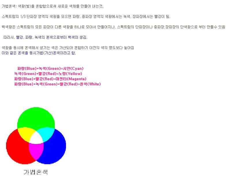 색의 혼합에서 텔레비전의 컬러 이미지는 어떤 방식으로 표현 ?